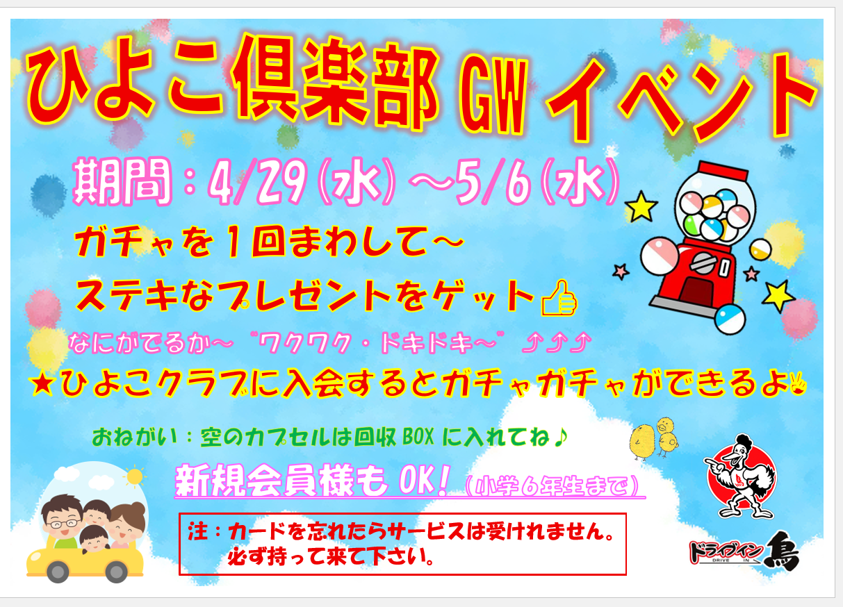 いつもドライブイン鳥をご利用いただきありがとうございます。