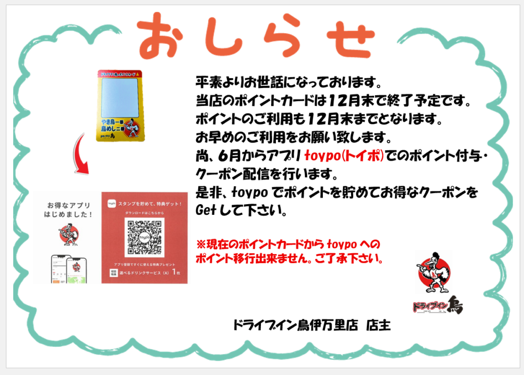 ポイントカードか新しく変わります♫現在、ポイントカードをお持ちの方も