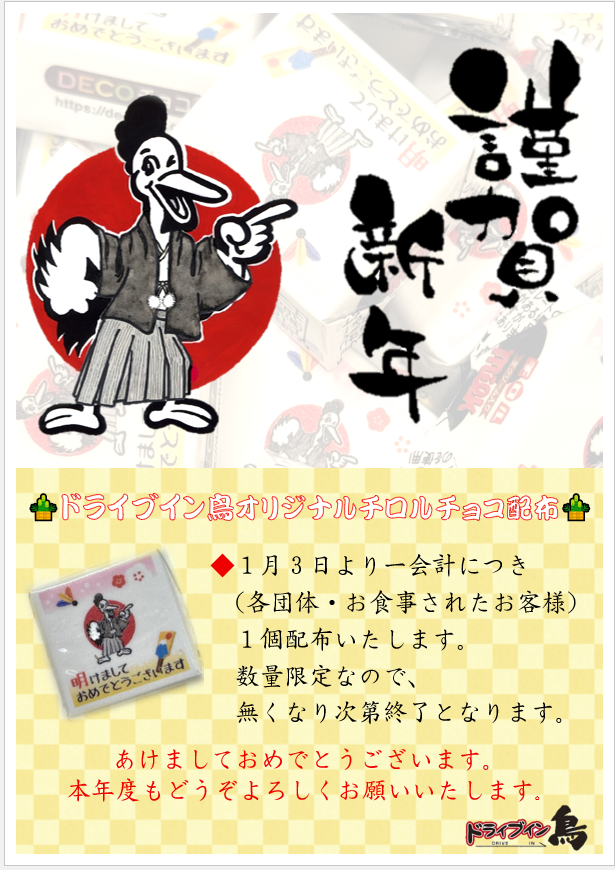 2027年もドライブイン鳥を宜しくお願い致します☺