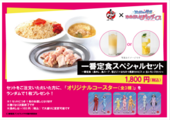 こんにちは。 ドライブイン鳥伊万里店をいつもご利用ありがとうございます。 本日よりこちらのメニュー「一番定食スペシャルセット」もスタートします。 ご注文いただくとオリジナルコースターをプレゼントいたします♫ 無くなり次第・・・