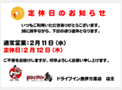 2月11日(水)は通常営業致します。尚、2月12日(木)は定休日となります。